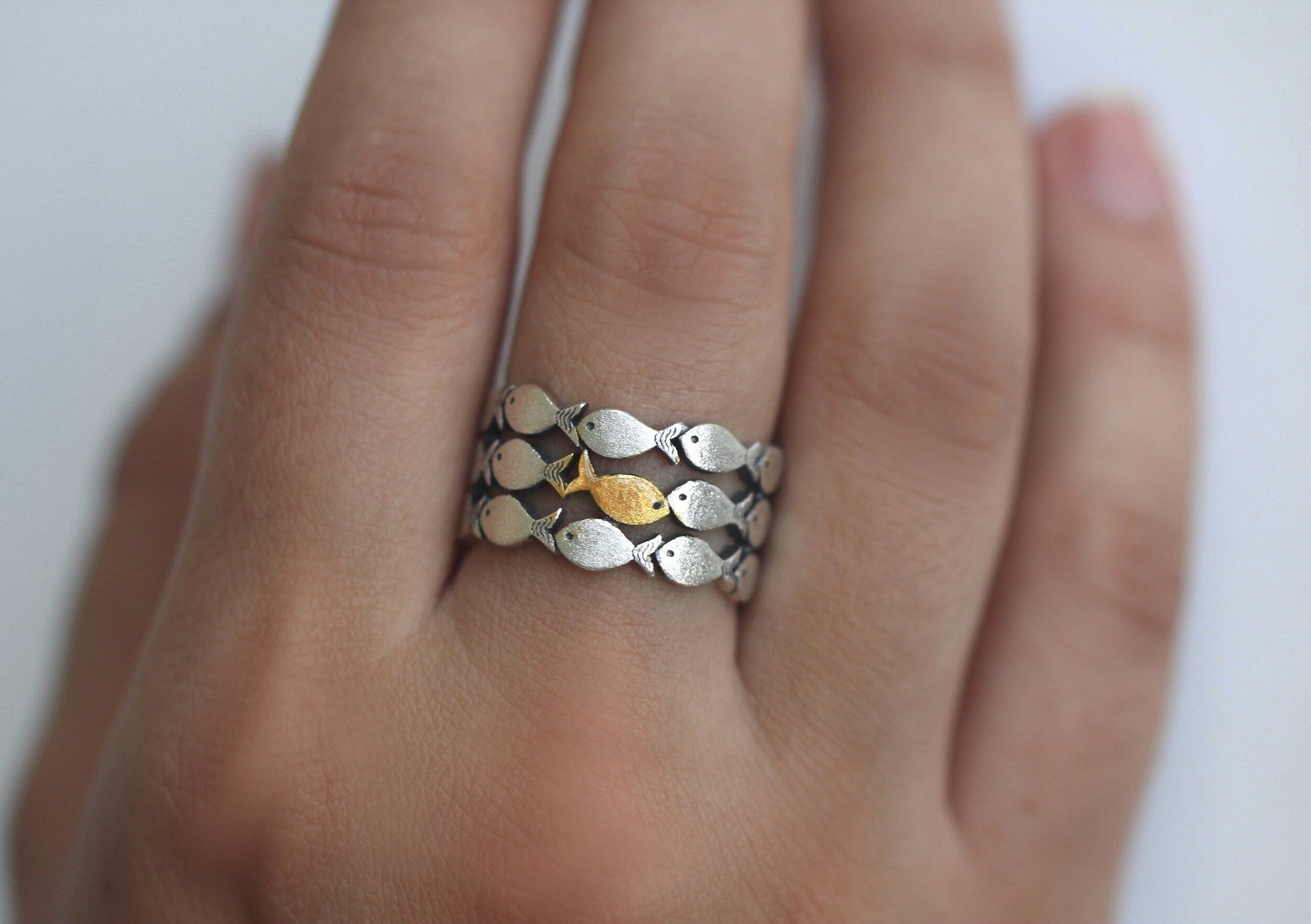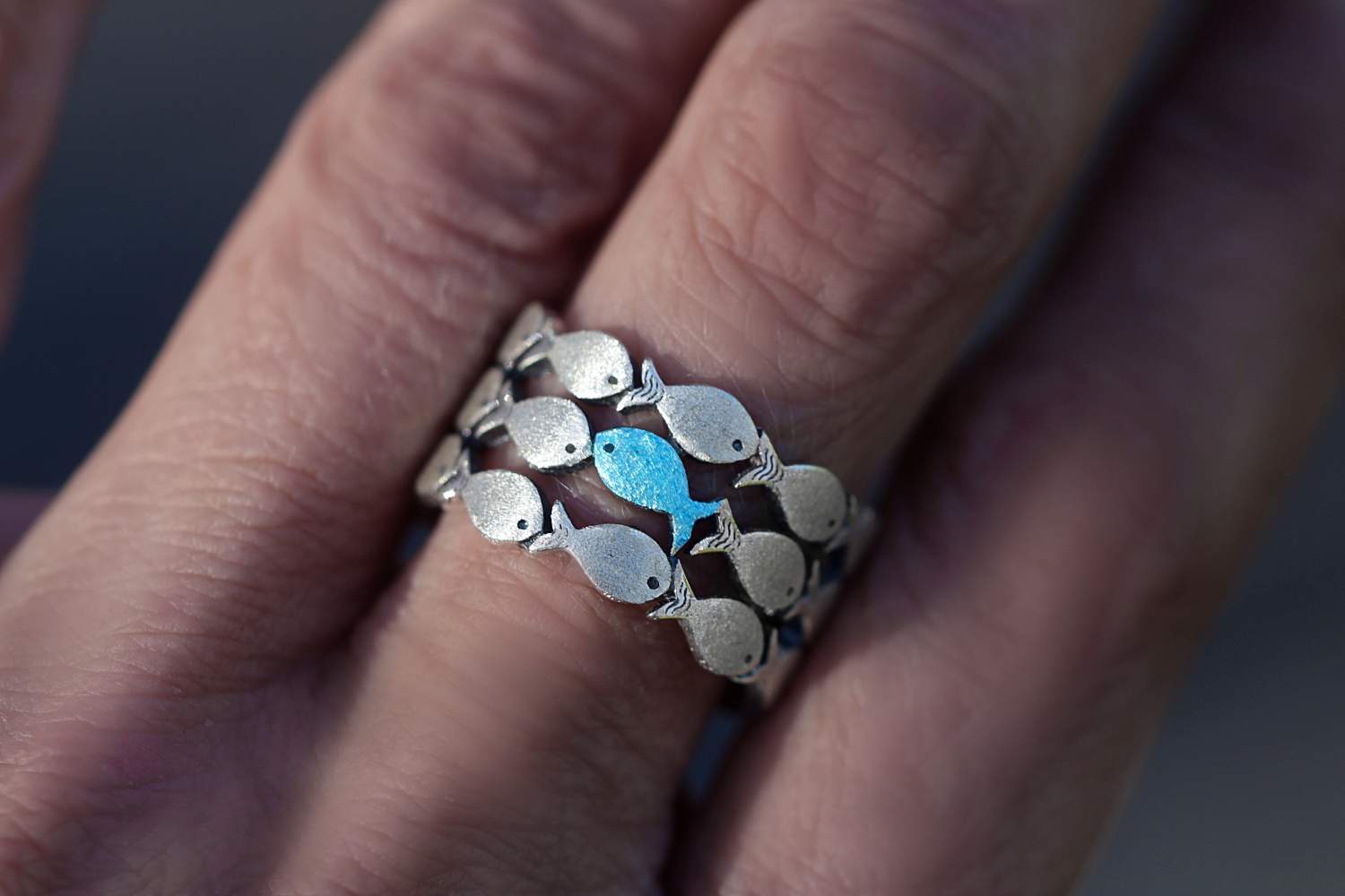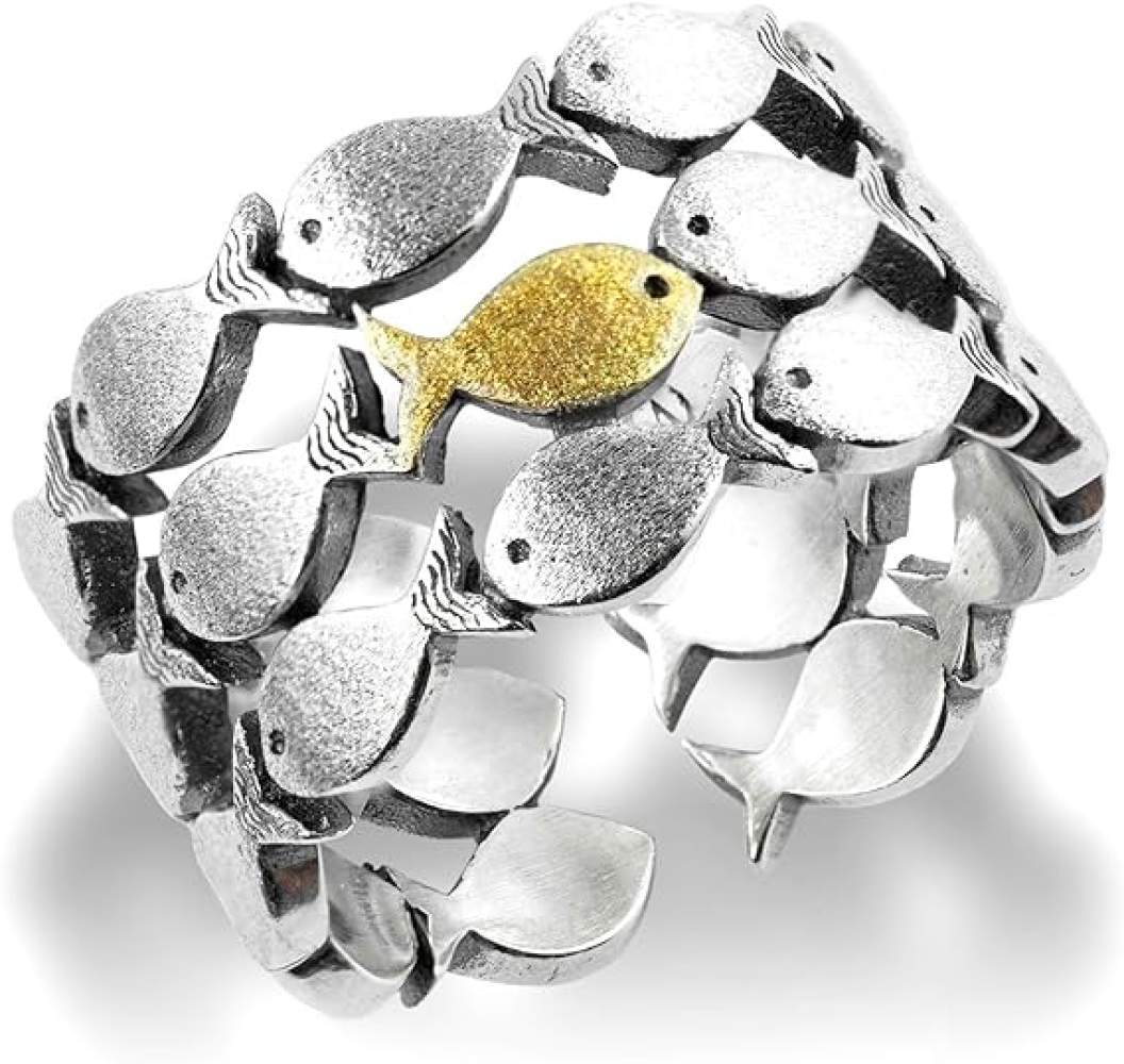 Gegen den Strom schwimmen: Dieser Ring steht für Selbstvertrauen, Unabhängigkeit und den Mut, sich von der Masse abzuheben. Die von Fischen inspirierten Details symbolisieren Bewegung, Zielstrebigkeit und innere Stärke. Es ist ein bedeutungsvolles Accessoire, das Sie jeden Tag tragen können, um sich daran zu erinnern, Ihren eigenen Weg zu gehen. Perfekt für alle, die Schmuck mit einer Geschichte lieben.