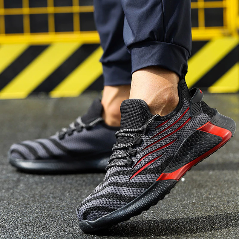 Durchstichsichere Sicherheitssohle: Die strapazierfähige, durchstichsichere Sohle schützt vor scharfen Gegenständen wie Nägeln, Metall und Fremdkörpern auf rauen Oberflächen. Diese zusätzliche Sicherheitsebene unterstützt sichere Bewegungen auf Baustellen und Industrieböden und gibt Ihnen bei jedem Schritt ein Gefühl der Sicherheit.