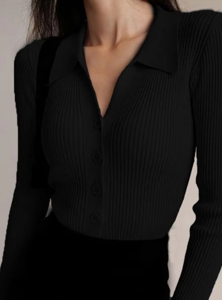 Chic Design: Der V-Ausschnitt und der Knopfkragen verleihen einen eleganten und modernen Touch, ideal für Ihre entspannten Looks.
