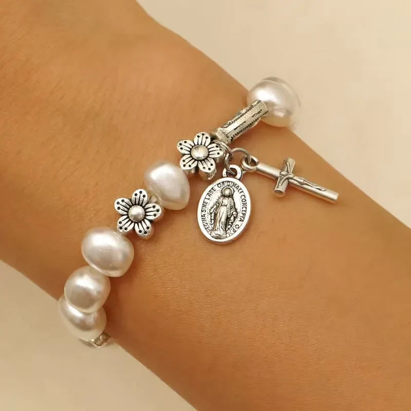 Ninetta Serenity Armband – Eine elegante Kombination aus Perlen, Glauben und floraler Schönheit!