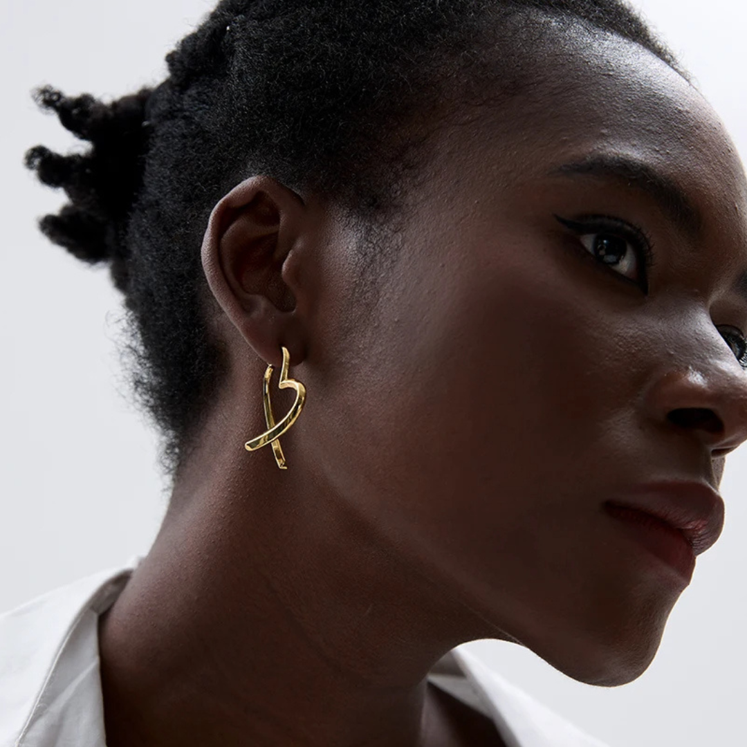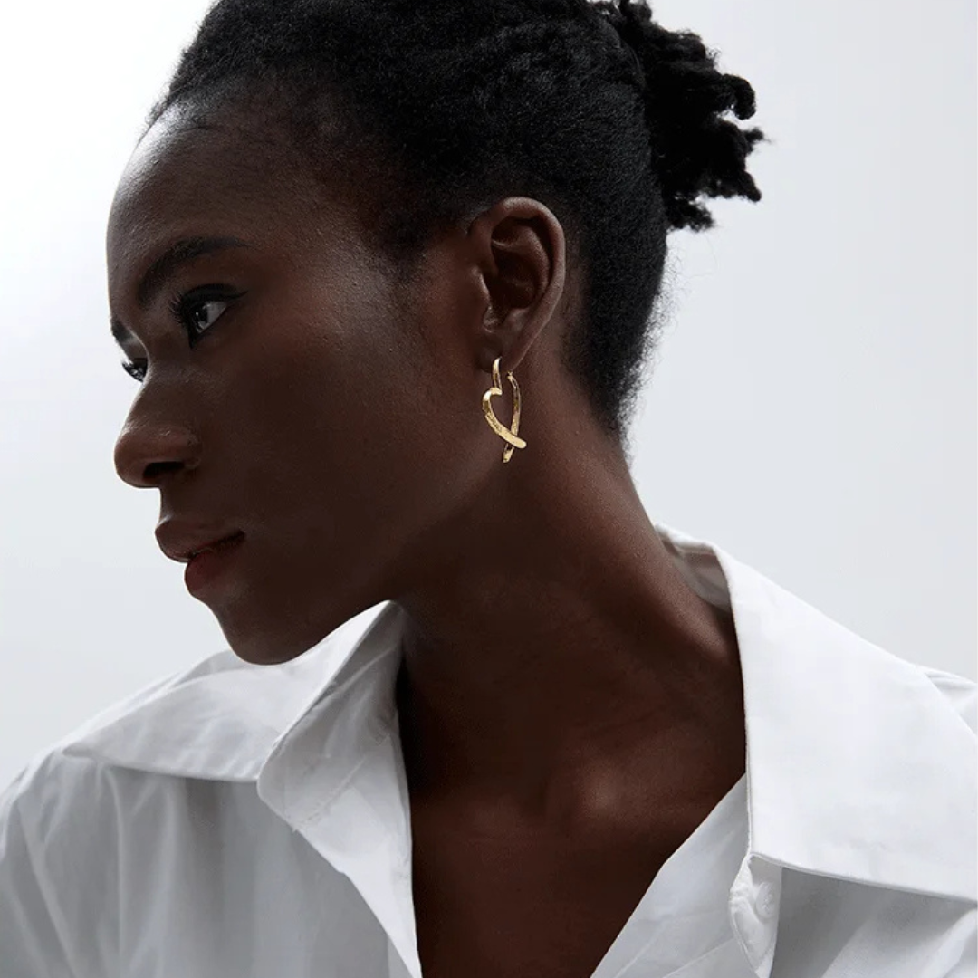 Eine elegante Neuinterpretation herzförmiger Creolen. Diese Ohrringe vereinen sanfte Kurven mit einer kühnen Note und strahlen einen lässigen, mühelosen Stil aus. Poliert, leicht und angenehm zu tragen – perfekt für Tage, an denen dein Schmuck für dich sprechen soll.