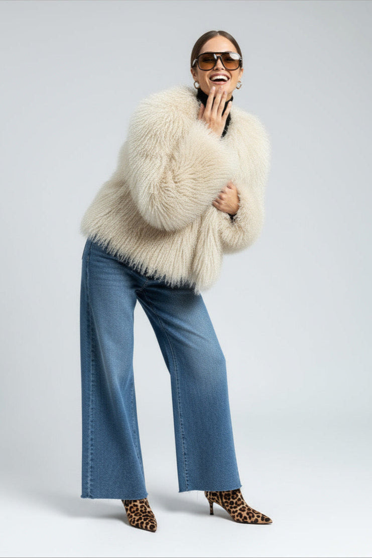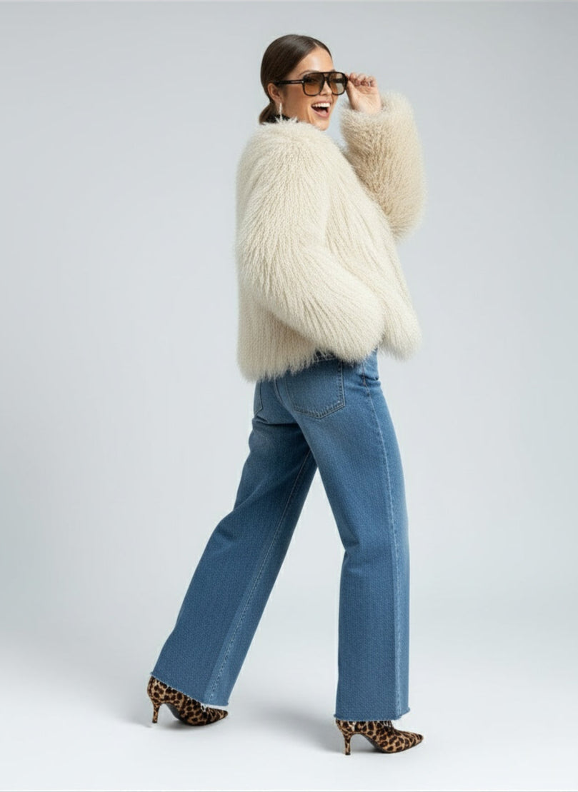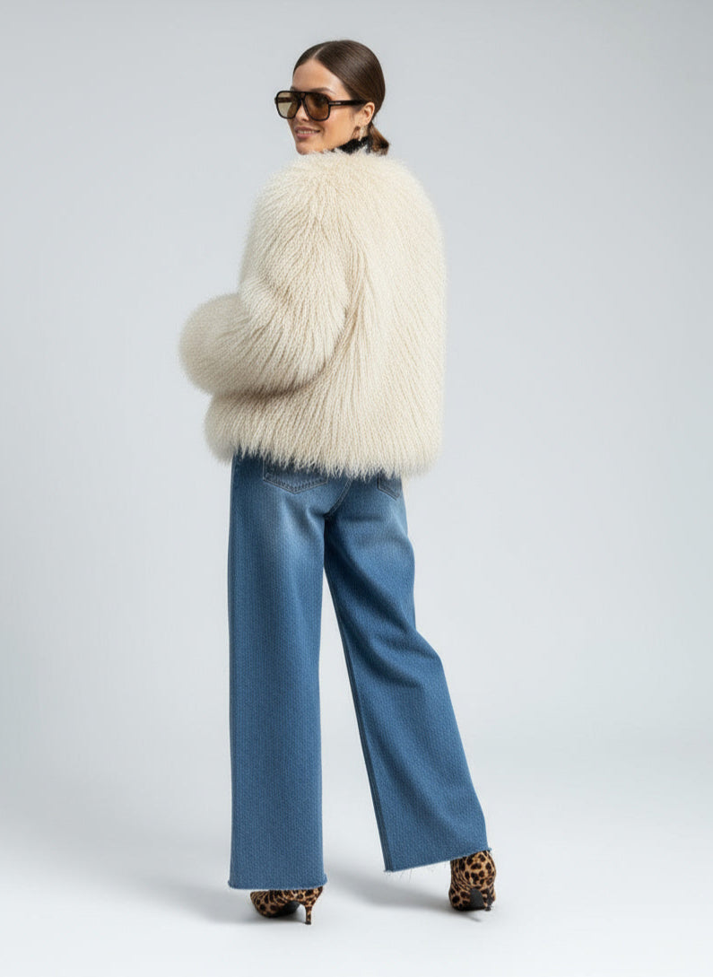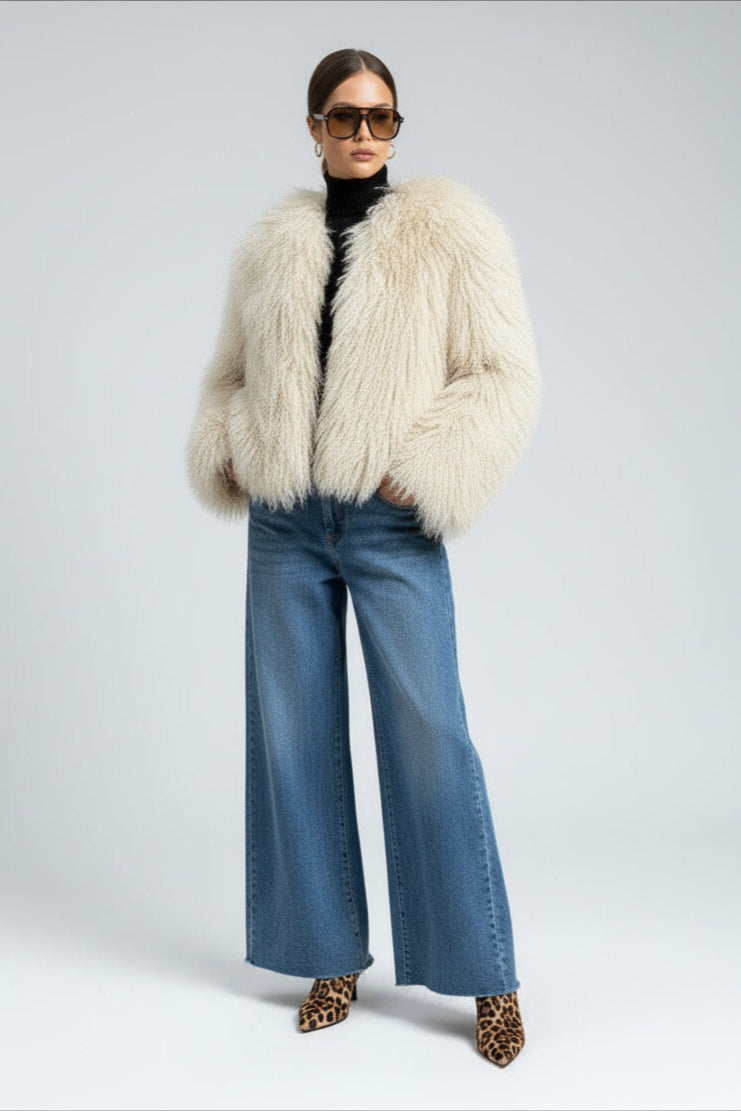 Olivia | Damen Kunstpelzmantel Langarm Mit Statement Kragen