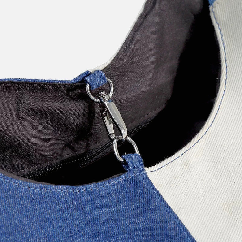 Reinigen Sie die Tasche bei Bedarf mit einem feuchten Tuch. Vermeiden Sie aggressive Reinigungsmittel, um die Qualität des Jeansstoffs zu erhalten. Bewahren Sie die Tasche an einem trockenen Ort auf, um ihre Form zu bewahren.