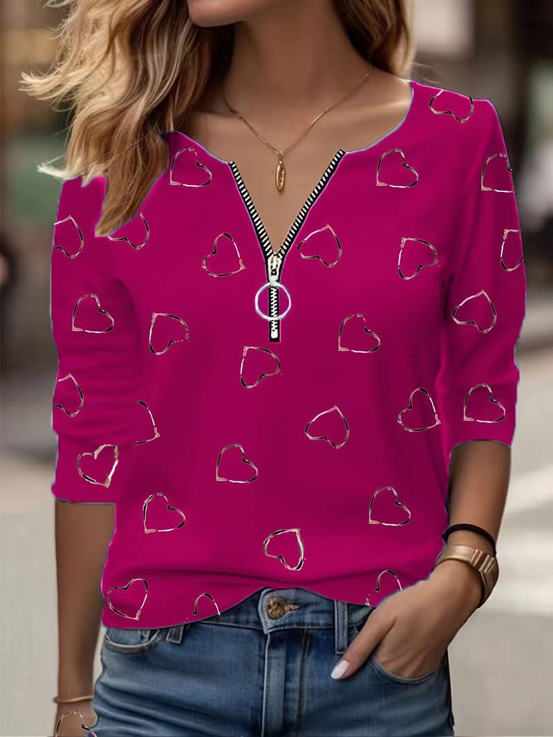 Ein schicker Twist für Freizeitkleidung – Romisha Oberteil mit Reißverschluss und Herzprint!!