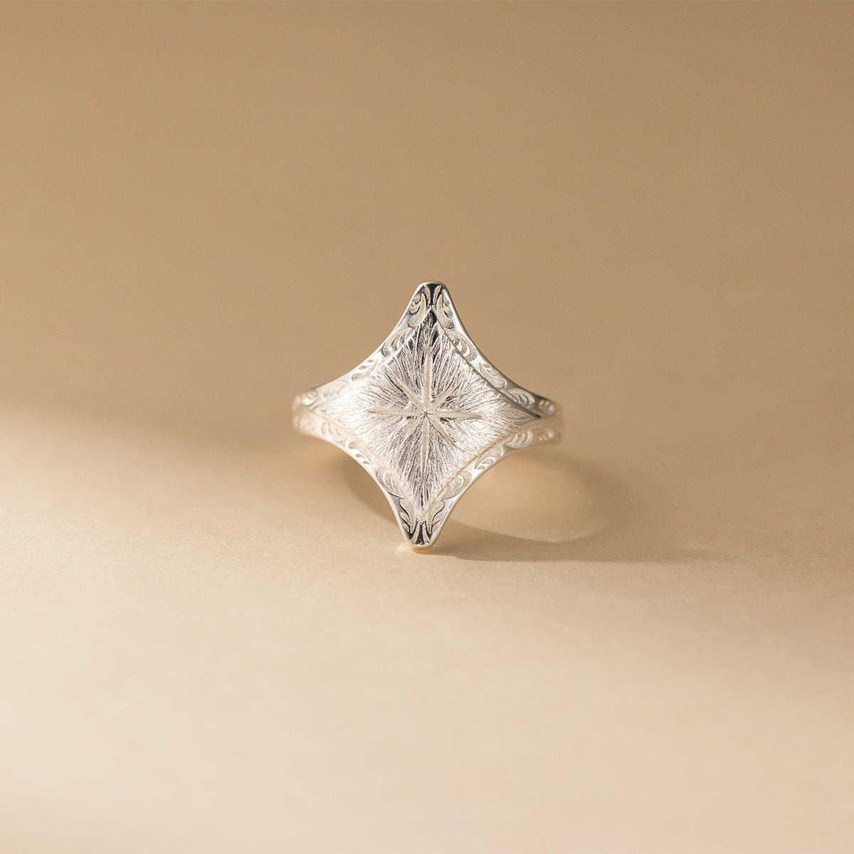 S925 Sterling Silber Vintage-Ring mit gebürstetem vierzackigem Stern