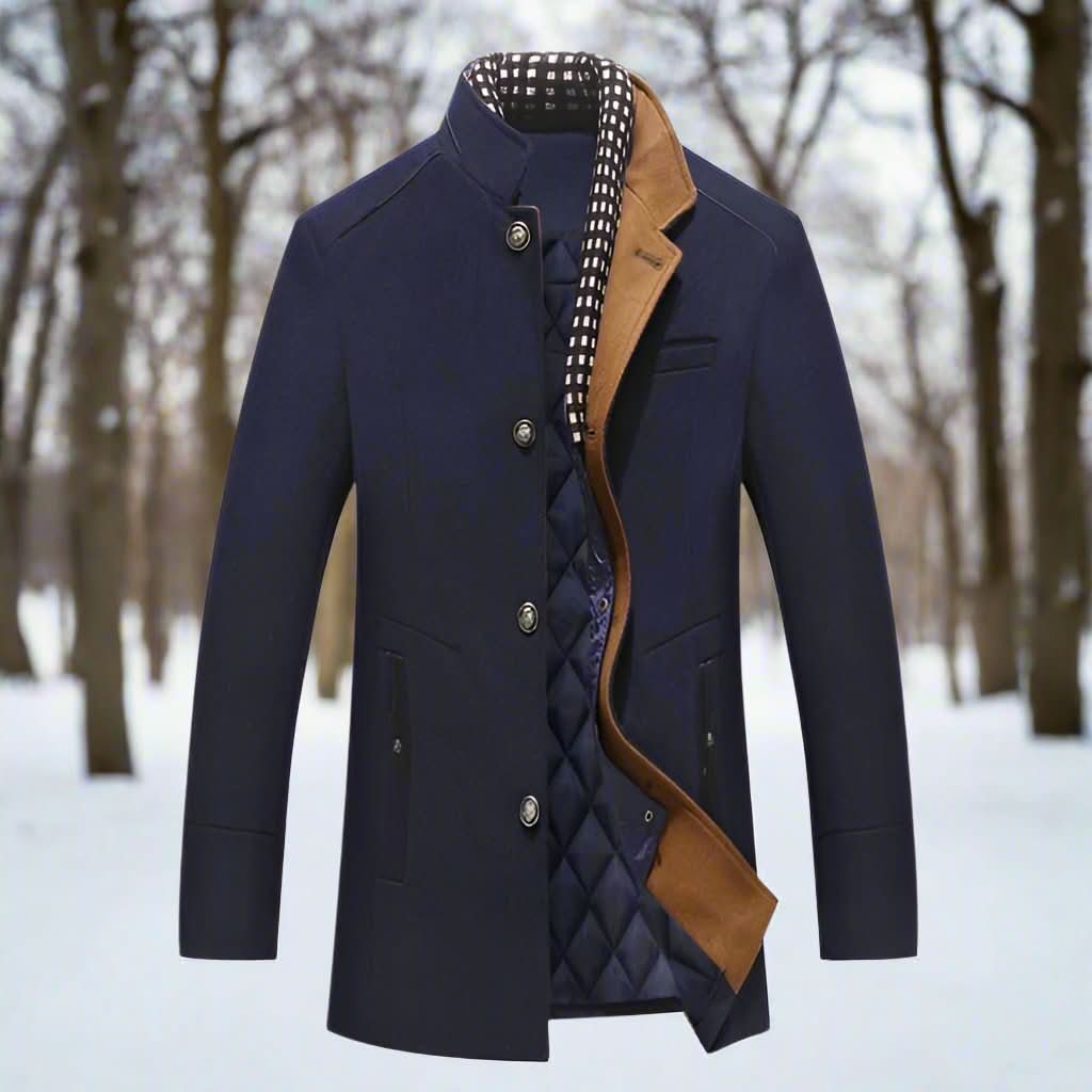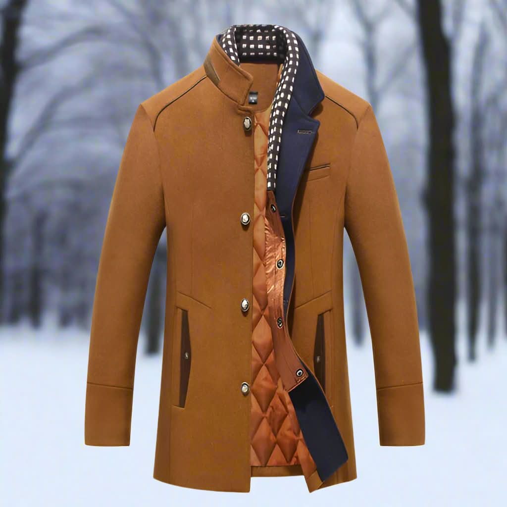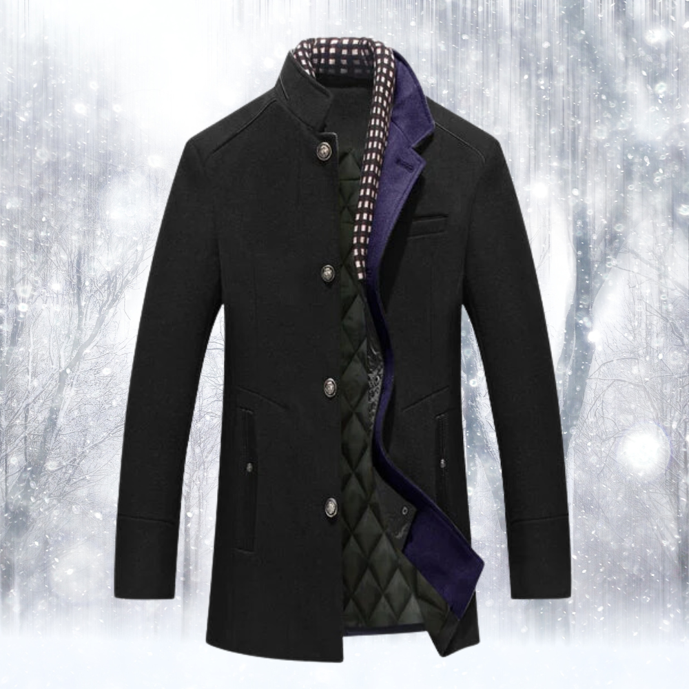 Der hochwertige Wollmantel für Herren überzeugt durch seine weiche Haptik und bietet gleichzeitig eine angenehme Wärmeisolierung. Mit seinem klassischen Schnitt eignet er sich hervorragend für den modernen Look in der kalten Jahreszeit.
