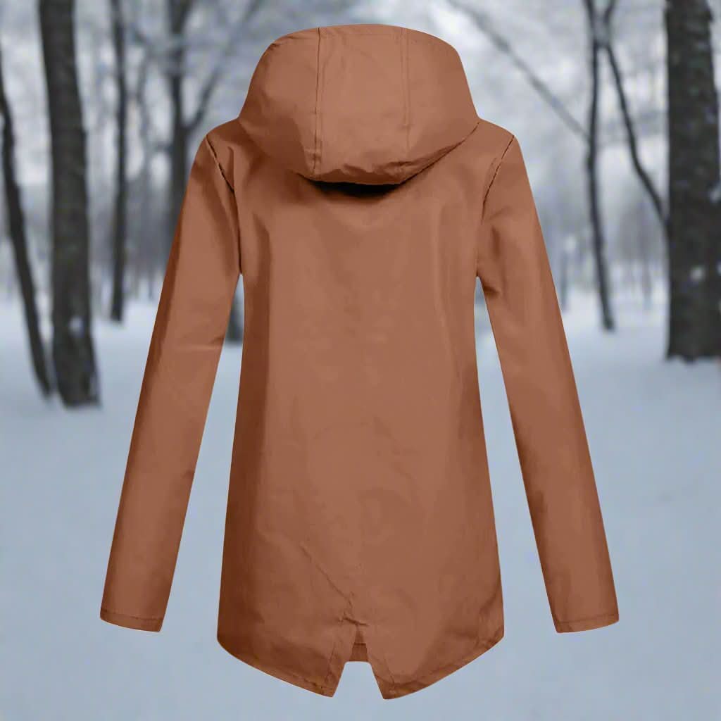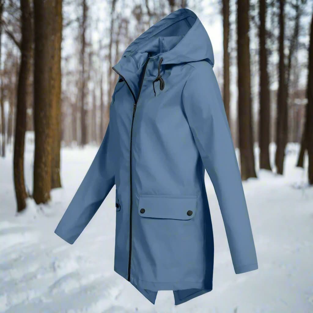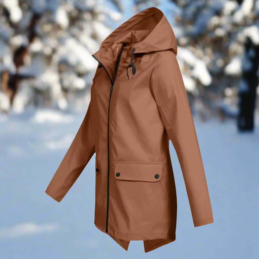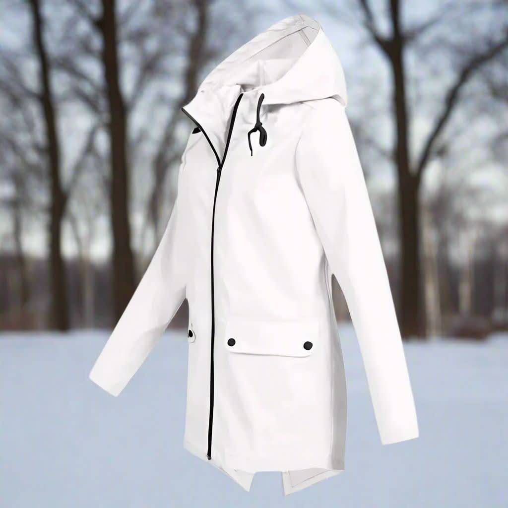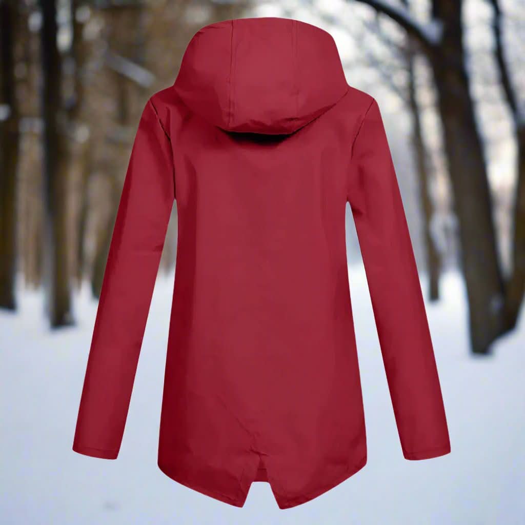 Schlanker, wetterfester, praktischer Regenmantel mit Kapuze für Damen