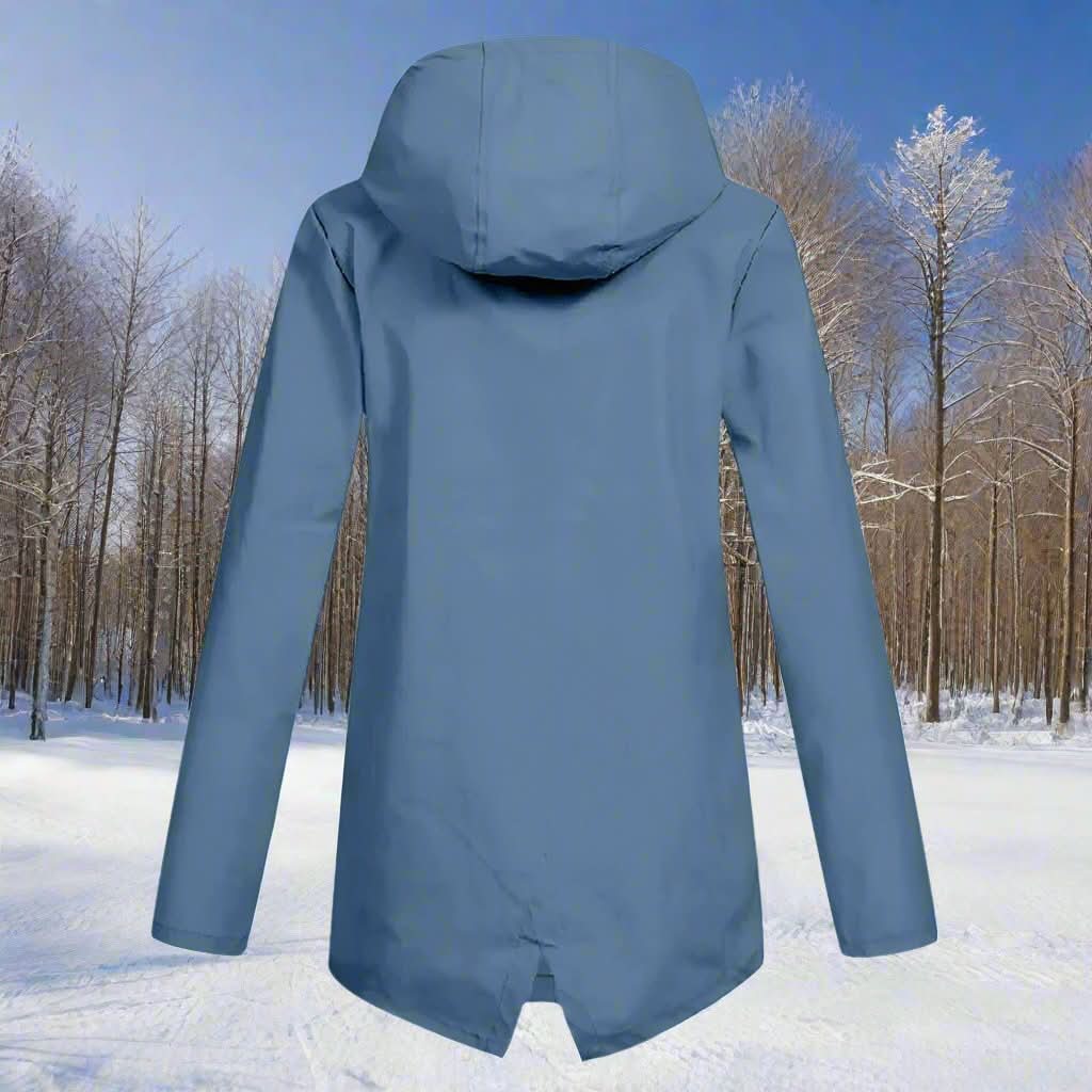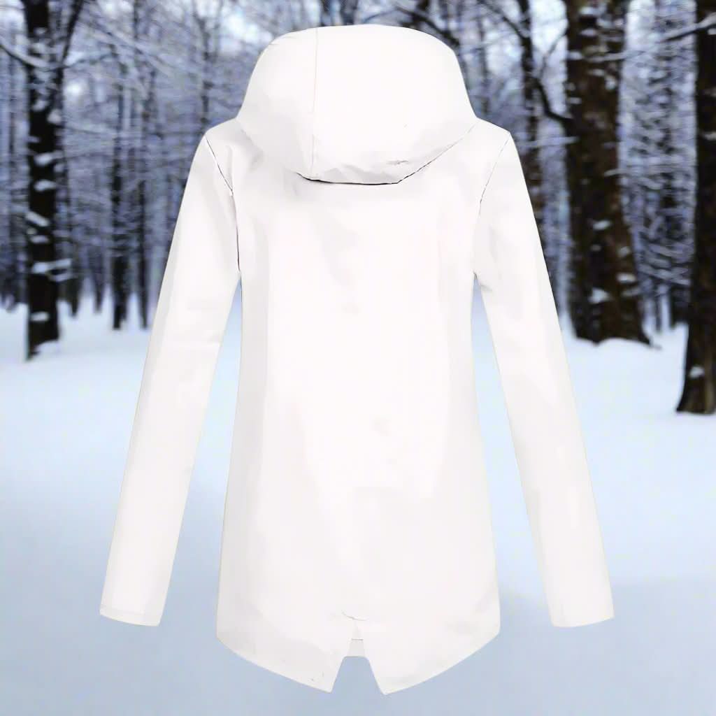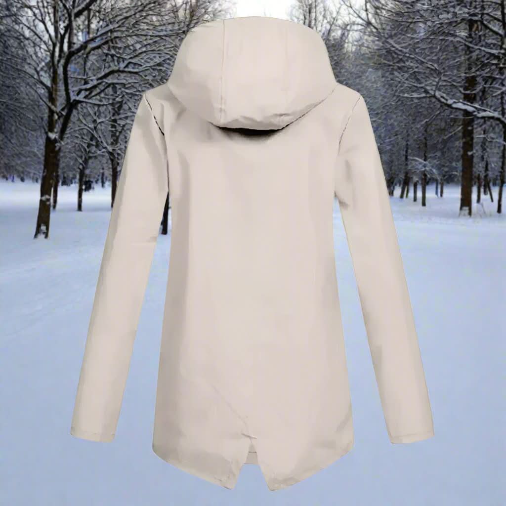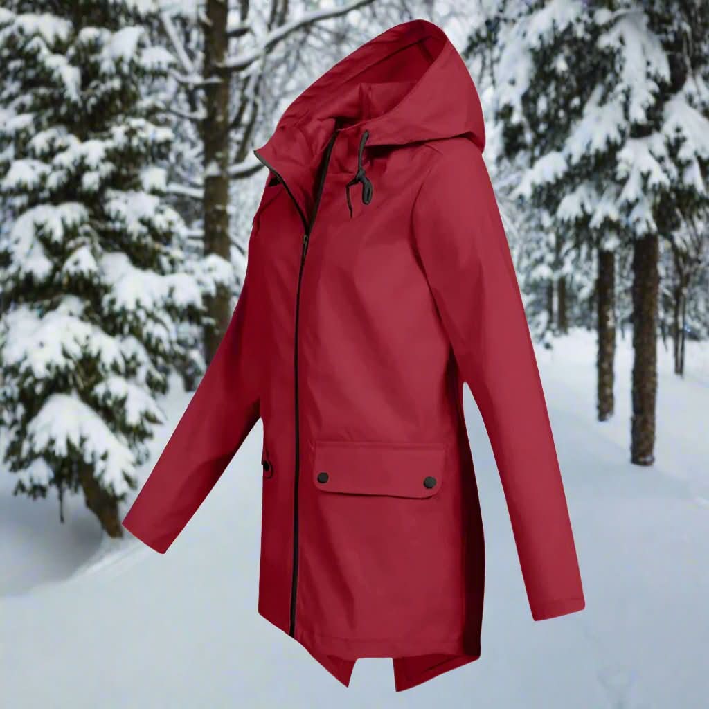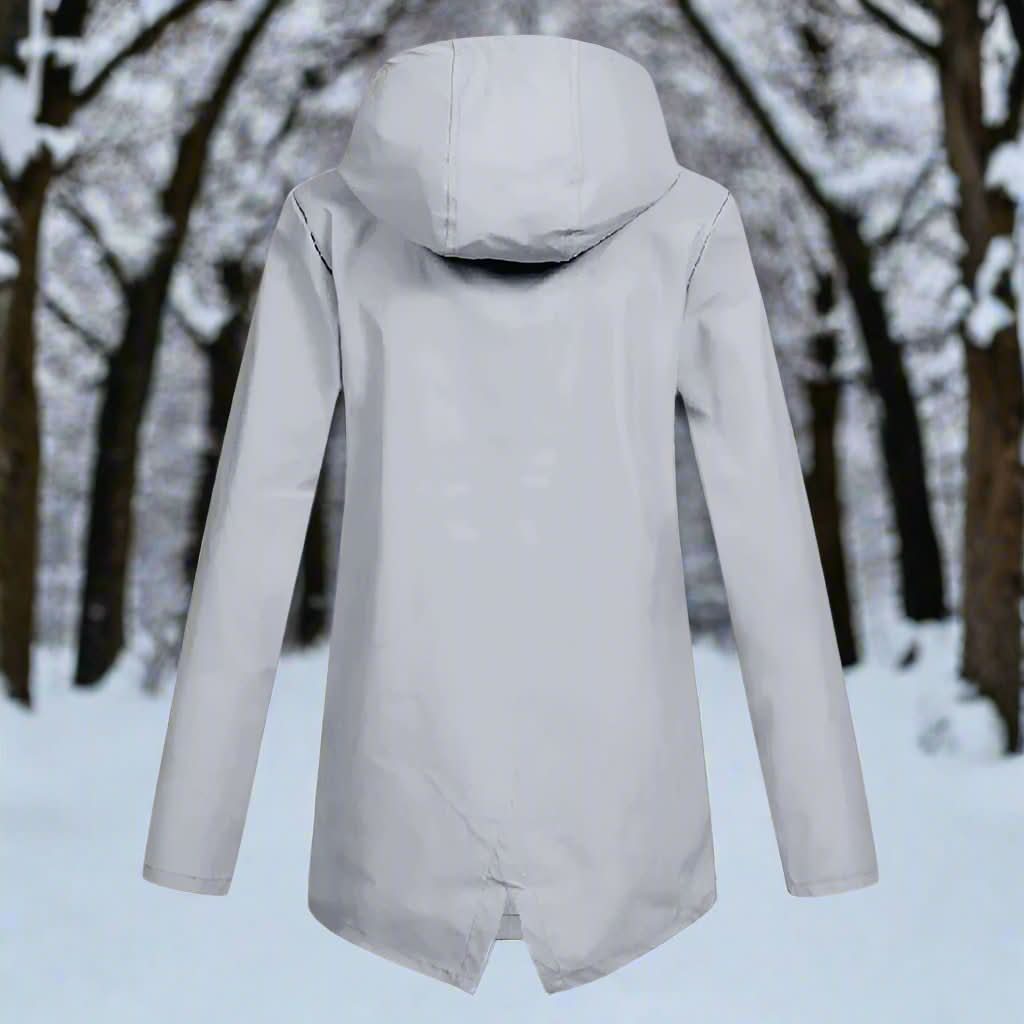 Schlanker, wetterfester, praktischer Regenmantel mit Kapuze für Damen