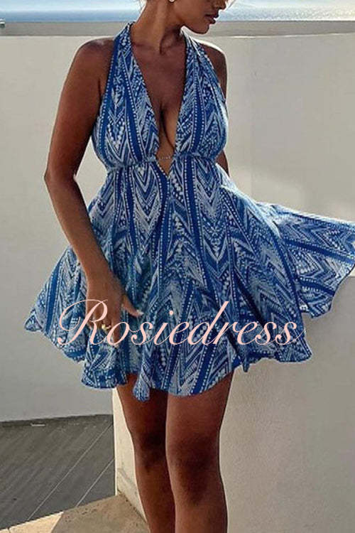 Dieses wunderschöne Kleid ist die ideale Wahl für Ihren nächsten Urlaub. Mit einem Halter-V-Ausschnitt und einem offenen Rücken ist es perfekt, um Ihre sonnenverwöhnte Haut zu zeigen. Es eignet sich hervorragend für entspannte Tage am Strand oder gesellige Abende mit Freunden. Dieses Kleid vereint Komfort und Stil und ist ein absolutes Must-Have für Modebewusste.