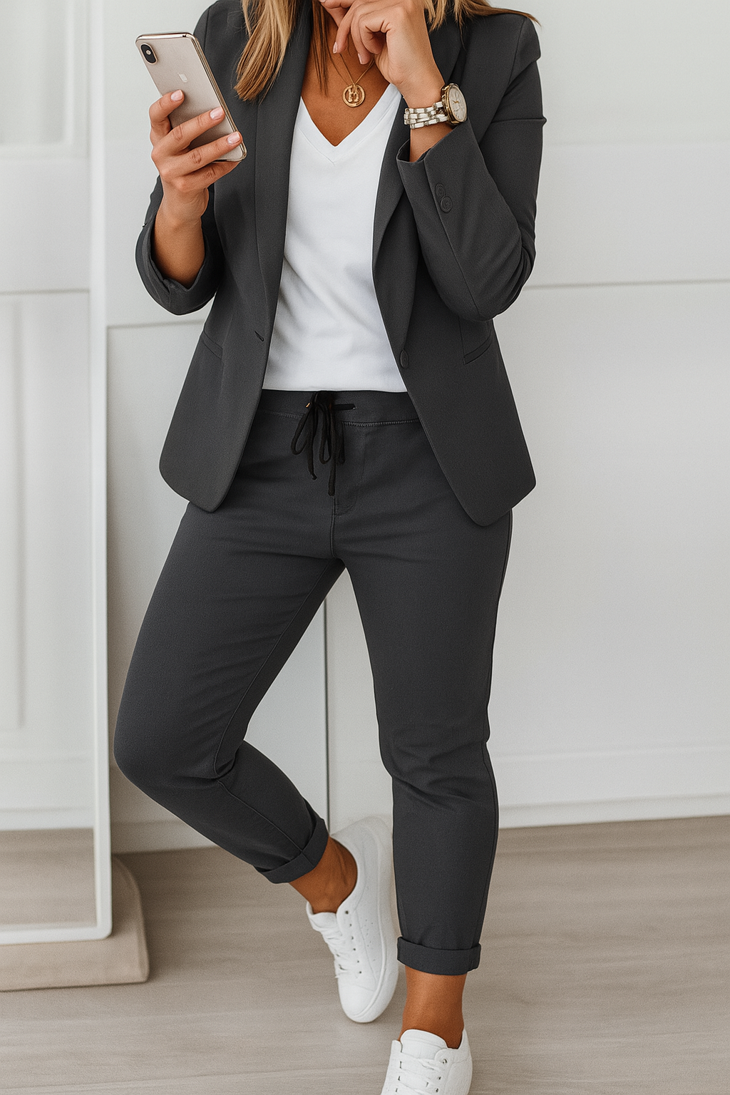 Unser beliebtes zweiteiliges Ensemble vereint modischen Stil und schmeichelhaften Komfort in einem eleganten, sommerlichen Look. Leicht, atmungsaktiv und selbstbewusst geschnitten – dieses Bestseller-Set ist darauf ausgelegt, überall aufzufallen. Ob beim Brunch oder bei einem Abend auf der Dachterrasse, dieses Outfit kombiniert Eleganz mit Leichtigkeit.