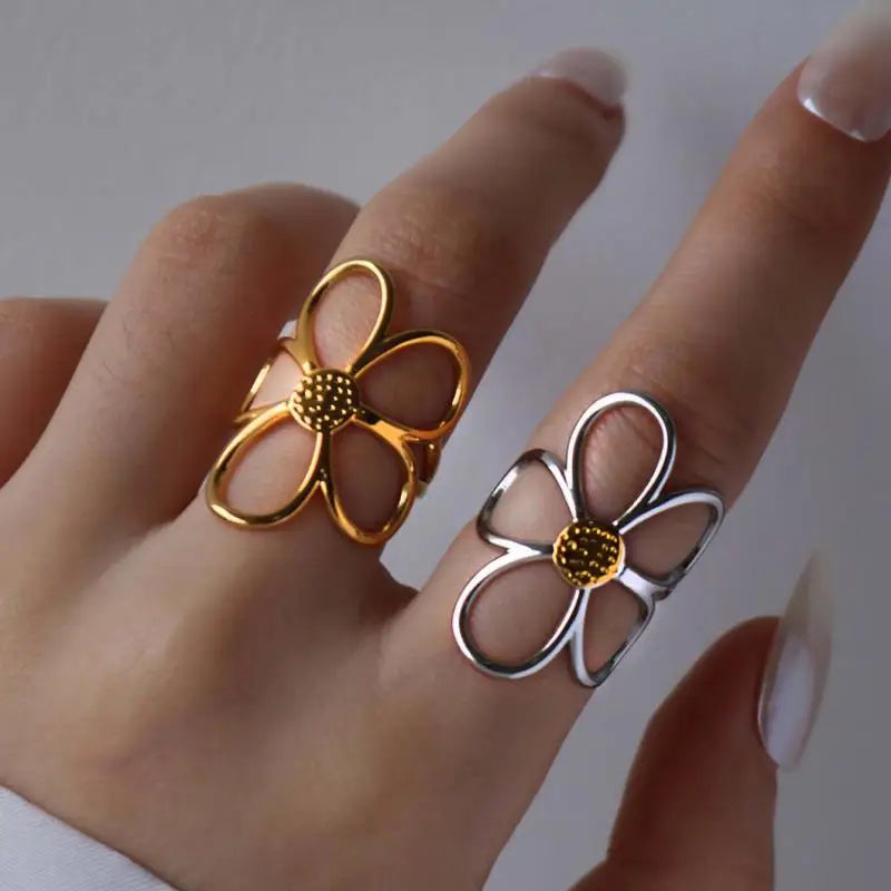 Zierlich, feminin und gemacht für Sonnenschein – dieser Gänseblümchen-Ring verleiht jedem Sommerlook eine süße Note. Gefertigt aus wasserdichtem Edelstahl, widersteht er Anlaufen durch Schweiß, Wasser und tägliches Tragen. Kein Wunder, dass er zu den Favoriten von Sundelle gehört.