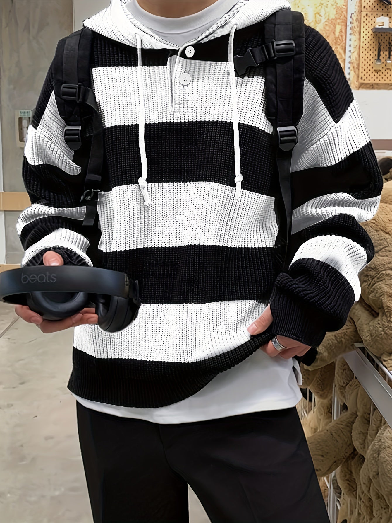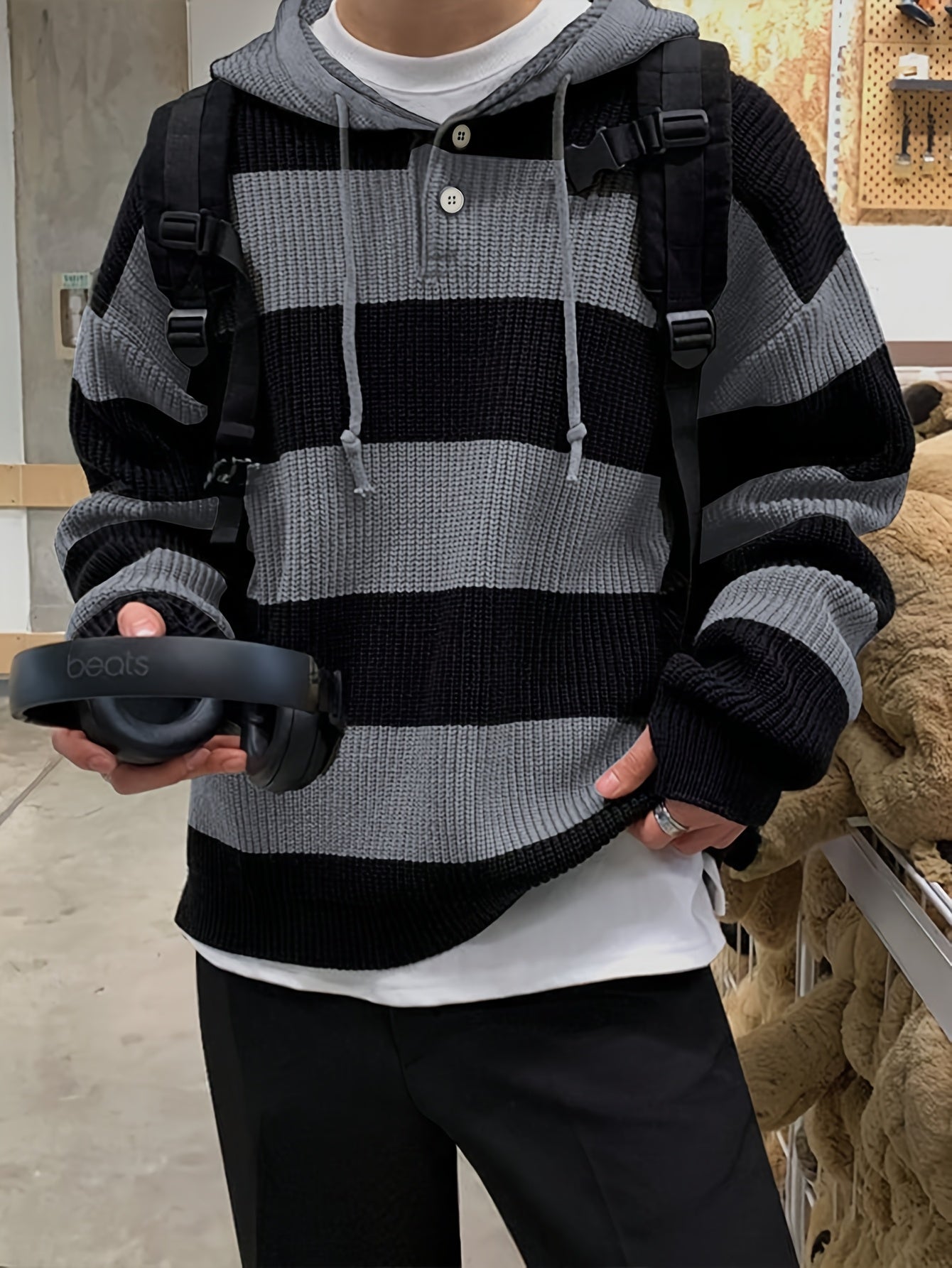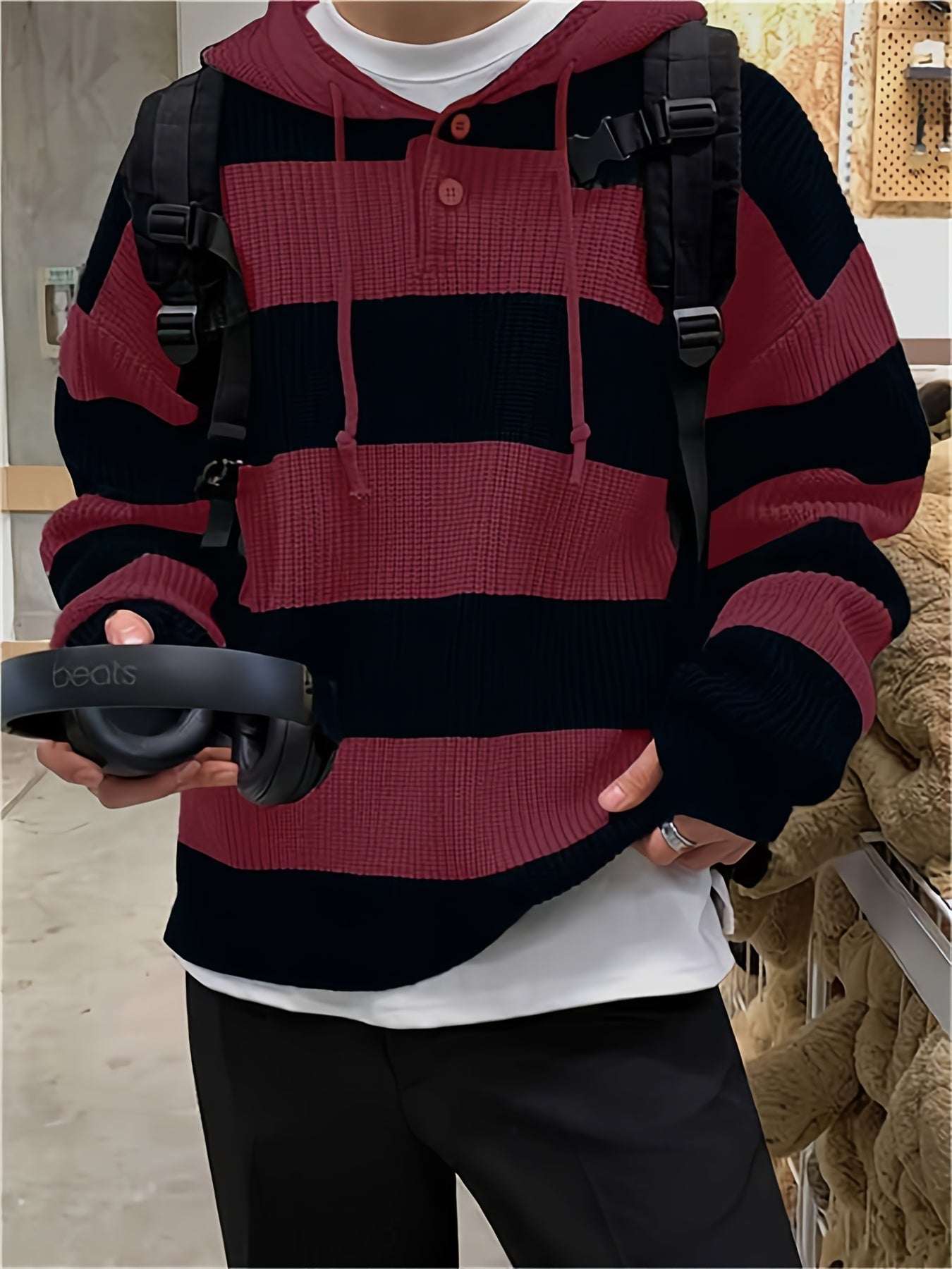 Bequemer Strick-Kapuzenpullover mit lockerer Passform für zu Hause, auf Reisen oder auf dem Campus!