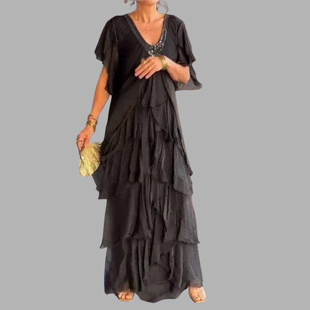 Theresia | Elegantes Maxikleid mit Rüschenärmeln