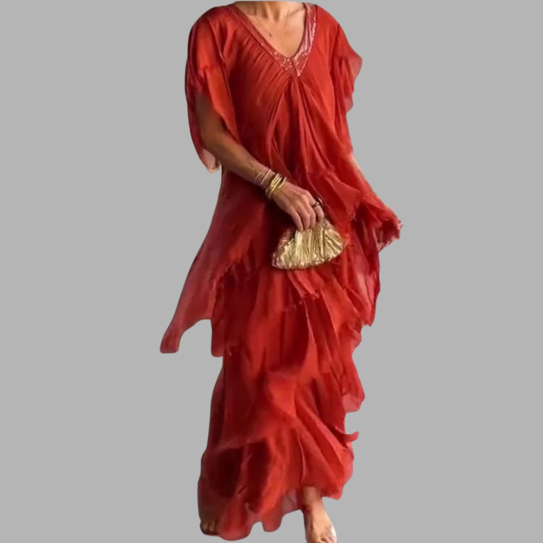 Elegant auftreten, ohne auf Komfort zu verzichten – das Theresia Maxikleid bringt genau diese Balance in deinen Alltag. Ob Hochzeit, Sommerabend oder Strandurlaub – dieses Kleid lässt dich in jeder Situation stilvoll und selbstbewusst wirken.