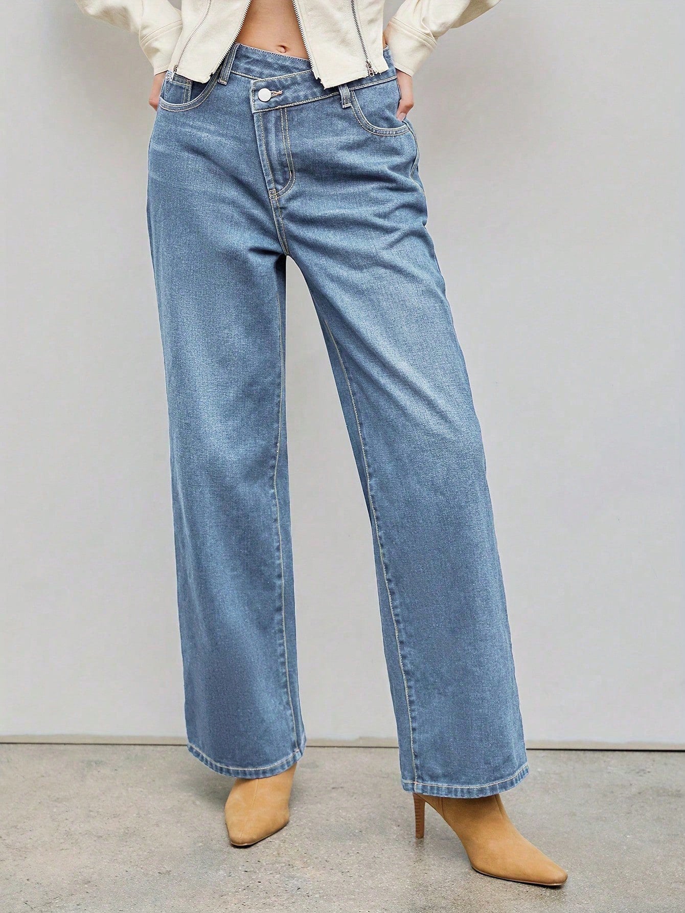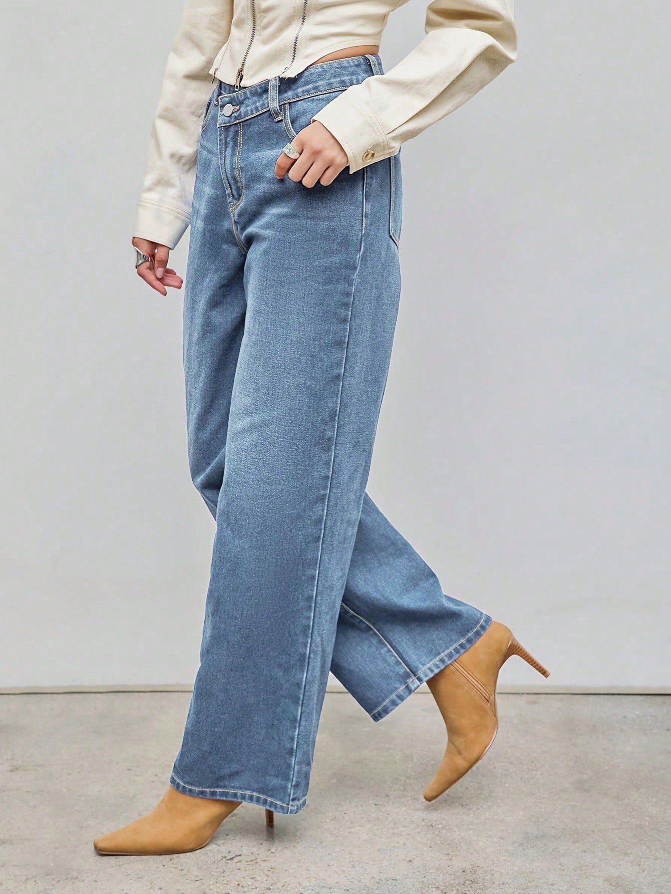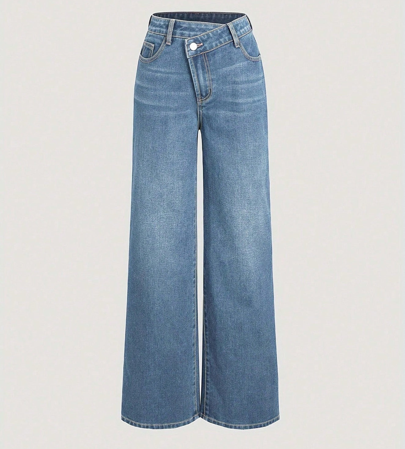 Diese modische Wide-Leg Jeans überzeugt mit ihrem lässigen und zugleich eleganten Schnitt. Der gerade Beinverlauf sorgt für eine bequeme Passform und einen modernen Look, der sich vielseitig kombinieren lässt. Ob mit Sneakers für einen entspannten Alltagsstil oder mit Absatzschuhen für einen eleganten Auftritt – diese Jeans ist die perfekte Basis für individuelle Outfits. Dank der hochwertigen Verarbeitung und der zeitlosen Waschung ist sie ein unverzichtbares Kleidungsstück für jede Garderobe in Deutschland.