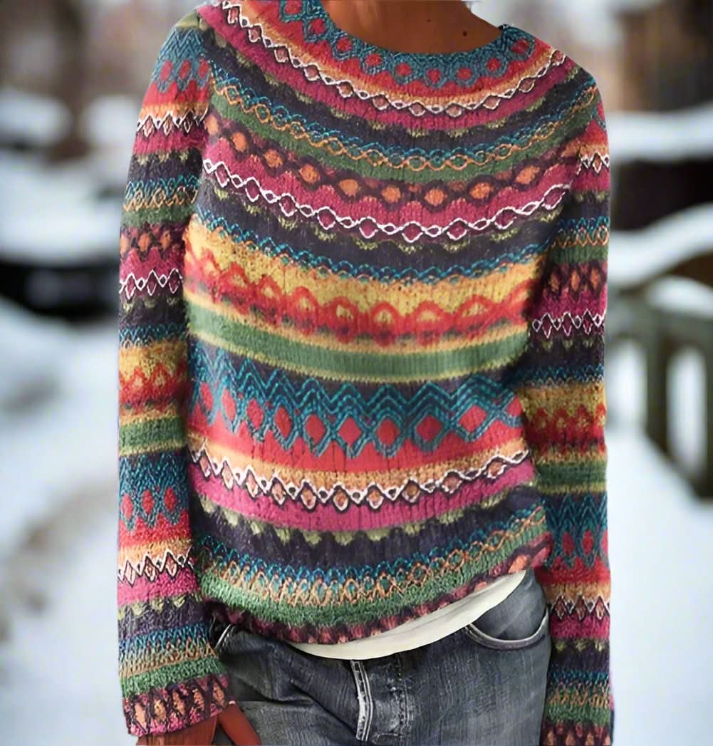 Der Damenpullover überzeugt durch sein farbenfrohes Streifenmuster und bietet eine angenehme Haptik. Er lässt sich hervorragend zu verschiedenen Outfits kombinieren und verleiht einen modernen Look.