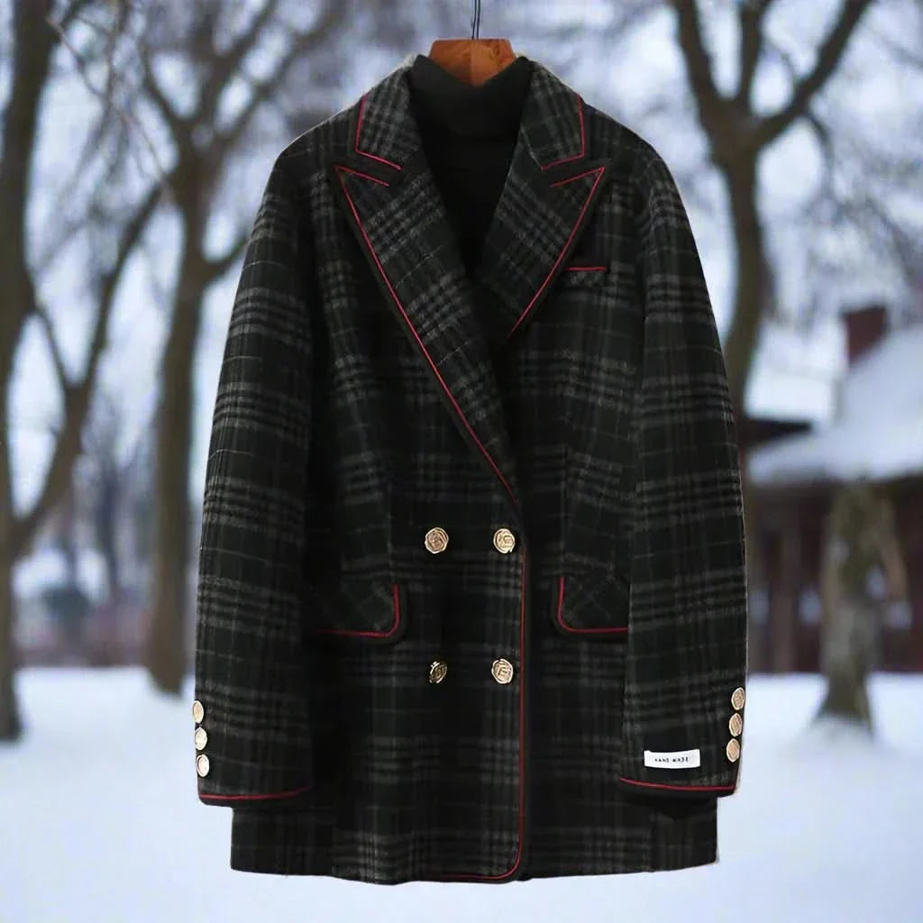 Trendy, weiche und isolierte lange karierte Jacke für Damen