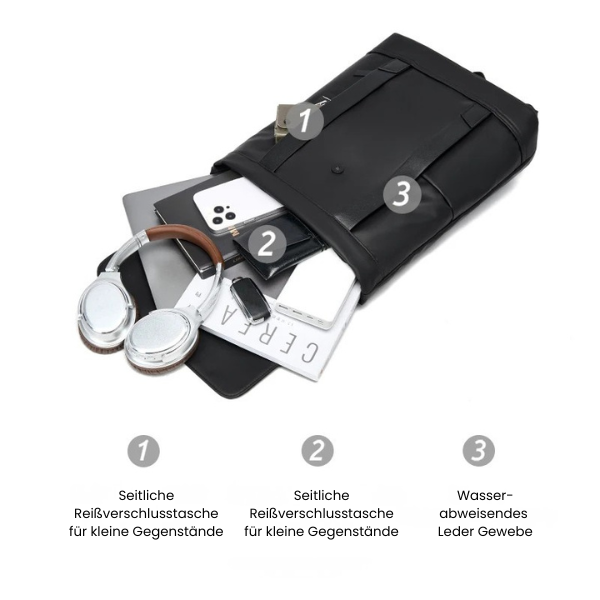 - Vielzahl an Taschen: Hauptfach, Laptopfach, Innentaschen und Fronttasche